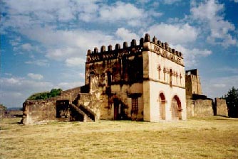 Emperors Minas, Zarsa Dingl, Za Dengl, and Susneyos had established residences by Lake Tana . Susneyos had built a Church of Tekla Haymanot in Gondar . Compared to Lake Tana , Gondar is not infested with mosquitoes, and its terrain offered excellent drainage for habitation even in the rainy season. Located in the Qaha and Angereb river basins, the Gondar woodland of that time could easily be turned into a city with Dambeya in the south and Wagara in the north furnishing food staffs of crops and cattle. Gondar was at the crossroads for trade with Enary (part of which is now southern Welega) in the south, Sinnar ( Sudan ) in the west, Sawakin and Massawa on the Red Sea coast as outlets to Yemen , India and elsewhere. These conditions and a desire to build a substantial capital city, perhaps in a place with a name that began with the letter G in accordance to legend, led Emperor Fassilides to commission the building of a castle at Gondar , where he had resided as of 1635. Fassil’s successors Yohannes 1 (1677-92), Iyasu I (1692-1706), Dawit II, Bakafa (1721-30) added structures to the walled city. Up to 44 churches were built in Gondar . Outside the castles, Gondar offered a large open space for public functions and open market activities. Also, there was a quarter for those that follow the Moslem faith (Islamege) adjacent to River Angered and near its confluence with River Qaha. Unfortunately, the building phase of Gondar was soon to arrive.